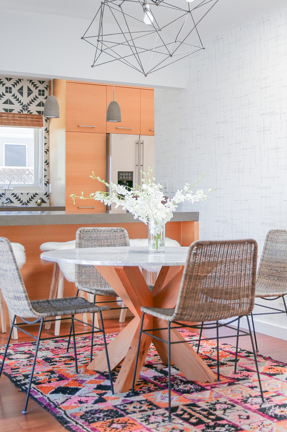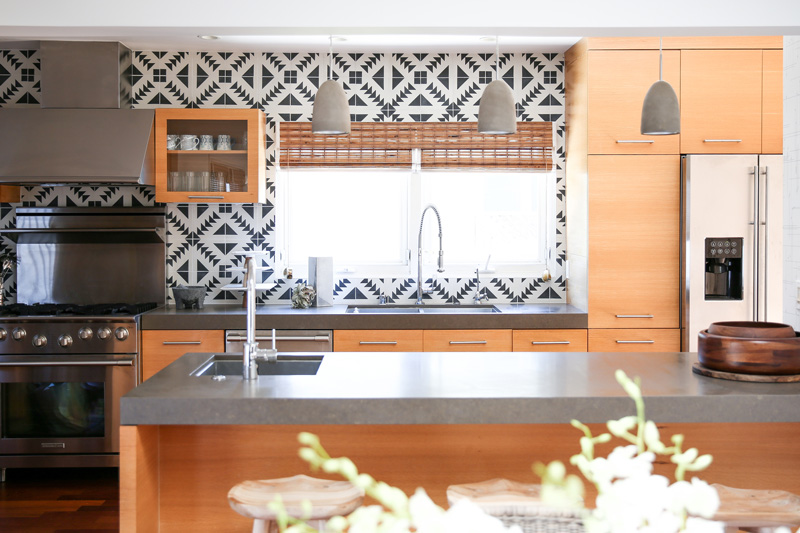 Before the weekend begins I wanted to share a little peek into this project again by Twofold LA. Located in Venice Beach, it has a Cali-boho vibe featuring a gorgeous shibori wallpaper and of course a little bit of glam with the blue velvet with nail-head detail sofa. The fabulous patterns continue in the kitchen with a bold graphic backsplash tile. SO FUN!