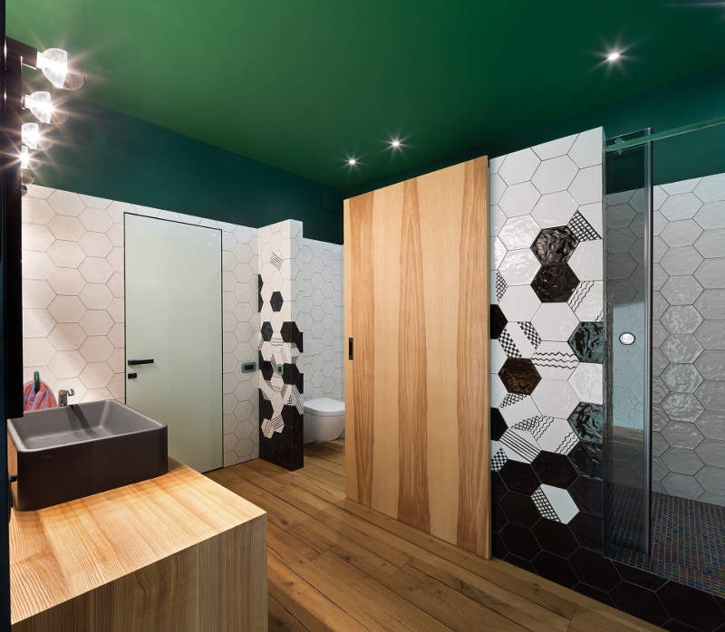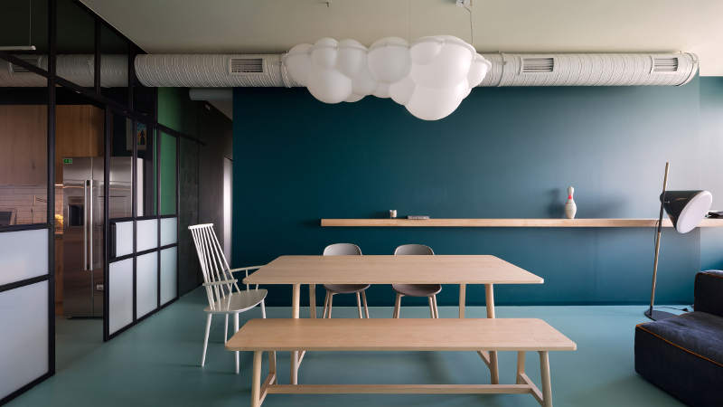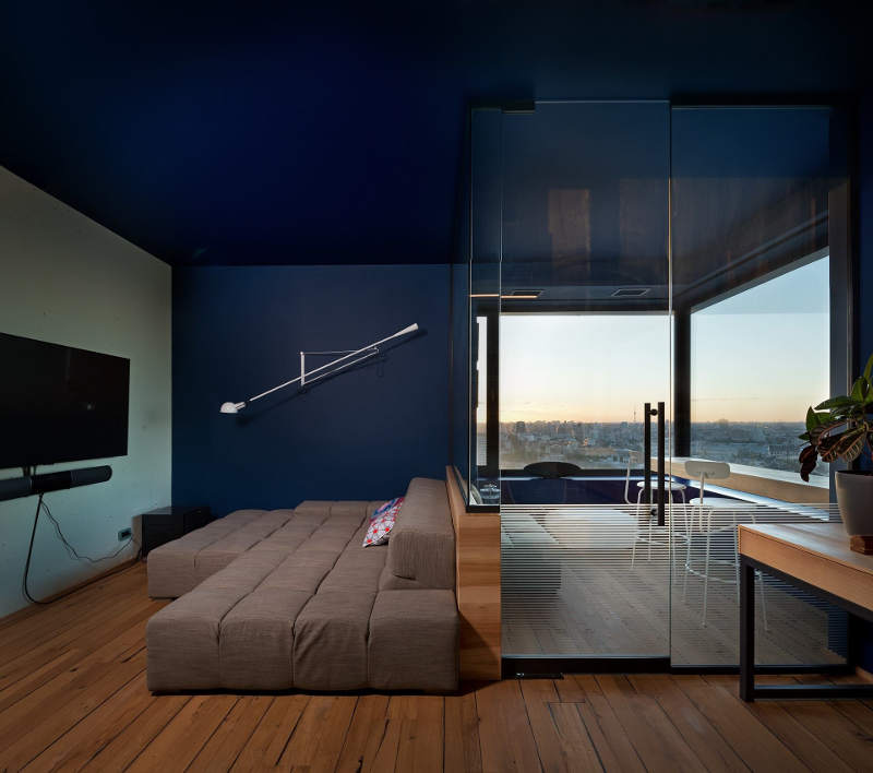 Different shades of green and blue are the heroes of the redesign of this 30th floor apartment in Kiev by Oleksii Venediktov and his design firm Special Project Venediktov. Bold, unique, a little Scandinavian with an undercurrent of industrial. I love how the colours change as the light advances and wanes changing the feel of the apartment.