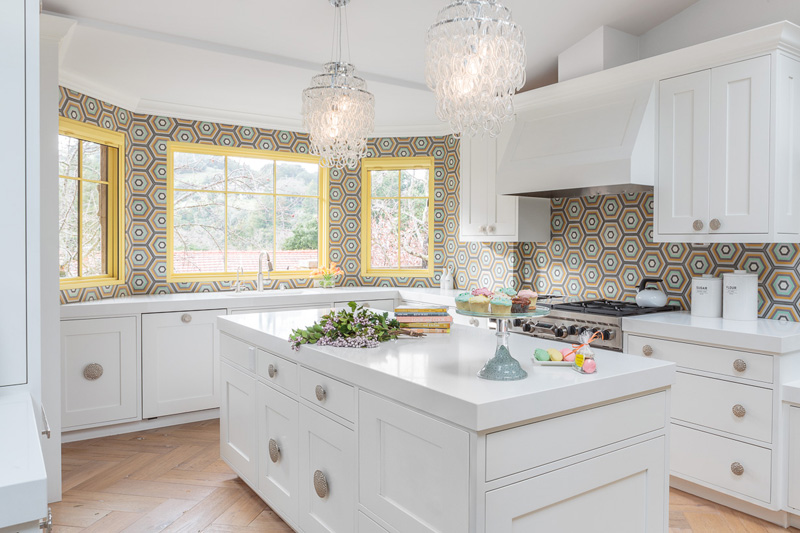 Bold, graphic, bright…and maybe the funnest white kitchen I have ever seen! I am head over heels for these spaces by Ann Lowengart.