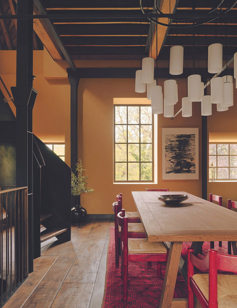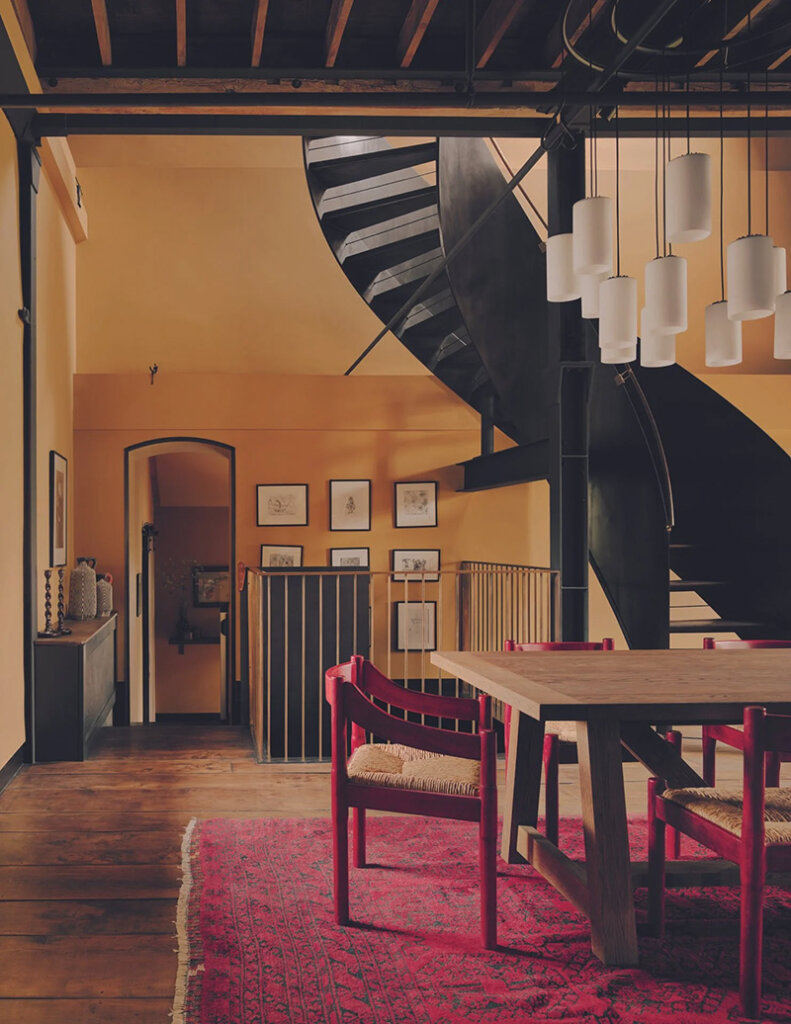 This project by Liddicoat & Goldhill involved the renovation of a Grade II listed 18th-century mill in Wiltshire, previously converted into a 3,133 sqft home. Built into a hillside, the four-storey structure was extended with a double-height orangery and terrace to connect the elevated living areas with the garden below. An inverted floor plan placed open-plan living spaces on the bright upper levels, while bedrooms occupy the more secluded lower floors. A carbon steel and oak helical staircase was inserted through the full height of the building, uniting the spaces while respecting the original industrial fabric. The design carefully balances conservation with the introduction of modern Scandinavian interiors. Photos: Michael Sinclair & Will Scott.