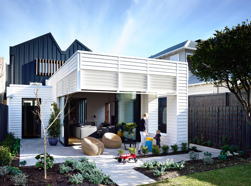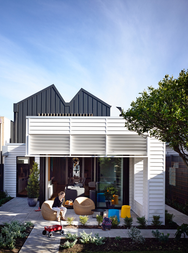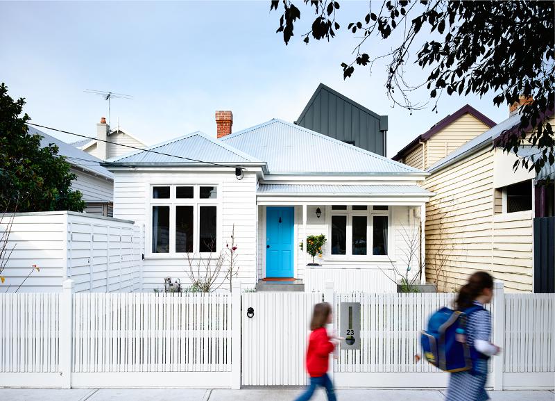 An unassuming weatherboard house out front with a stylish surprise out back. Colour, fun, energy. A new life for an old home. Techné Architecture + Interior Design with Doherty Design Studio.