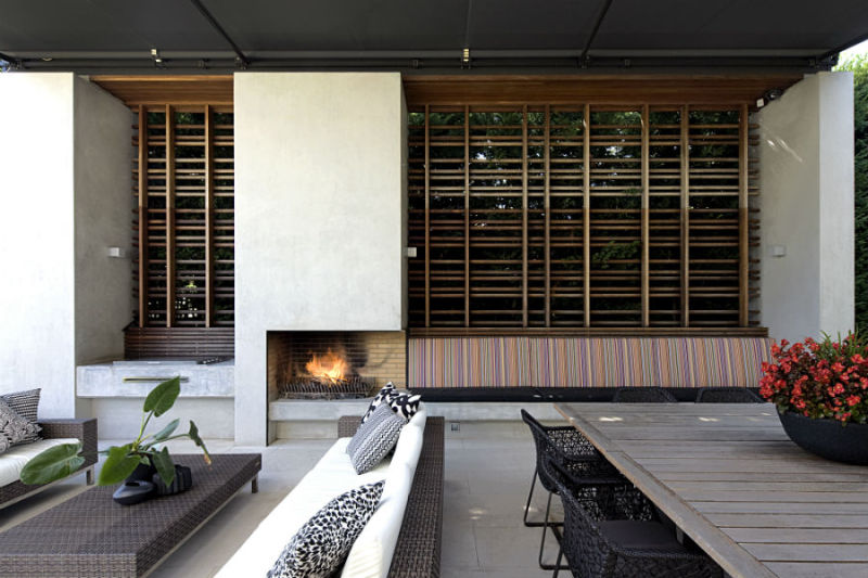 Will you excuse me if I start back to front today? I’ll work my way from the outside in. Amazing outdoor entertaining spaces in this Canterbury, Melbourne home by Neil Architecture. Stylish, mod/traditional home too. Join me for a hit of tennis, perhaps a dip in the pool or just kick back in the cabana? Yes please.