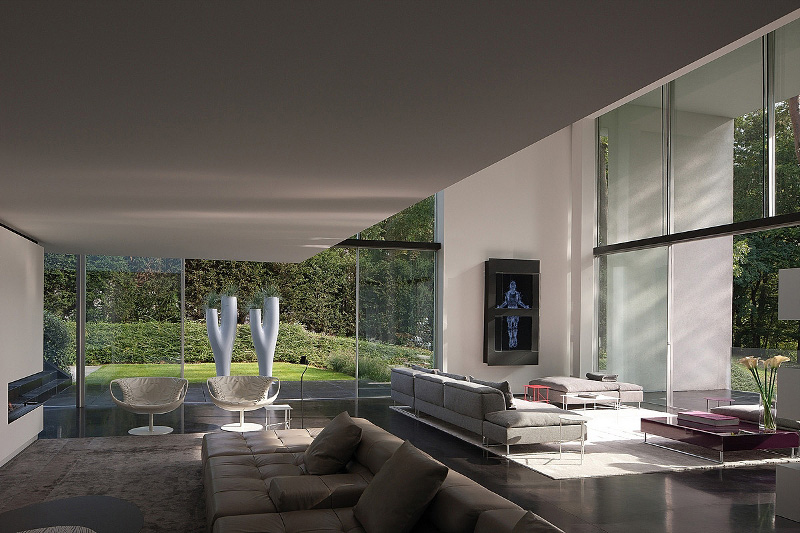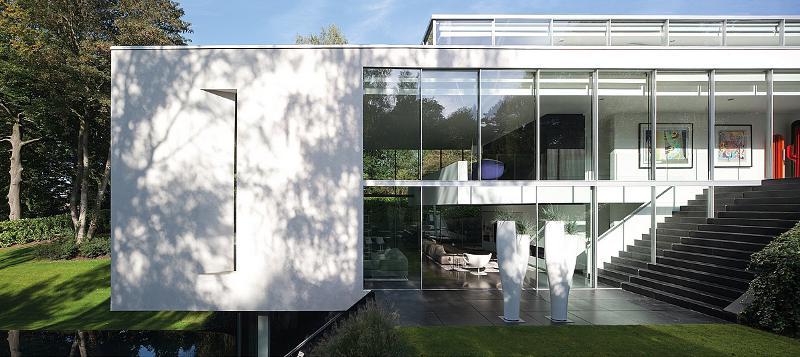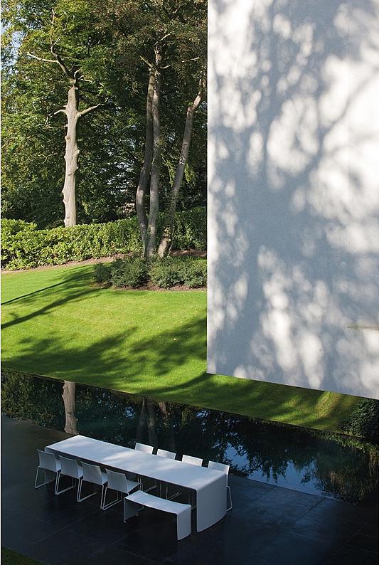 It may take a lot of discipline to live the minimalist life (and in this case a lot of money) but, oh, how beautiful is the simple line, the intersection of positive and negative, boxes balanced on manicured lawns, glass walls throwing privacy to the wind. Austere luxury by AABE (Atelier d’Architecture Bruno Erpicum & Partners).