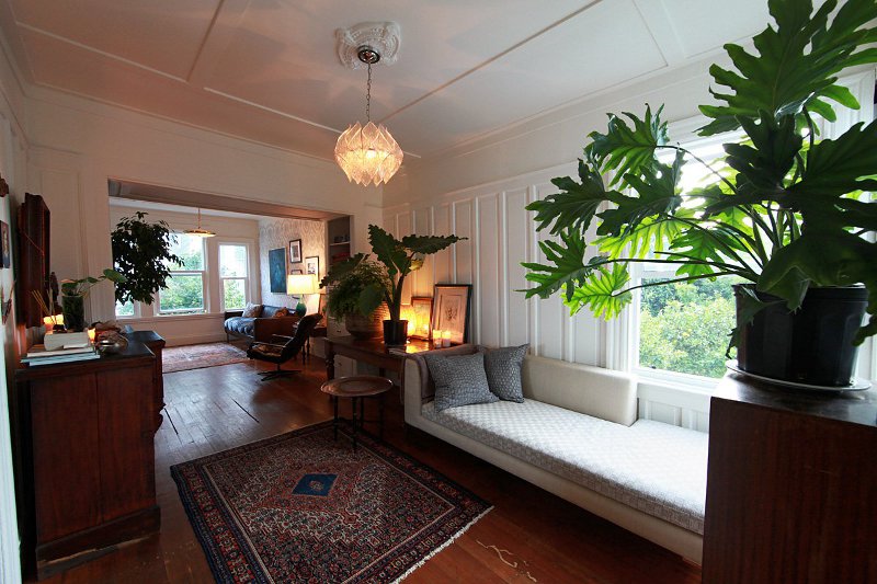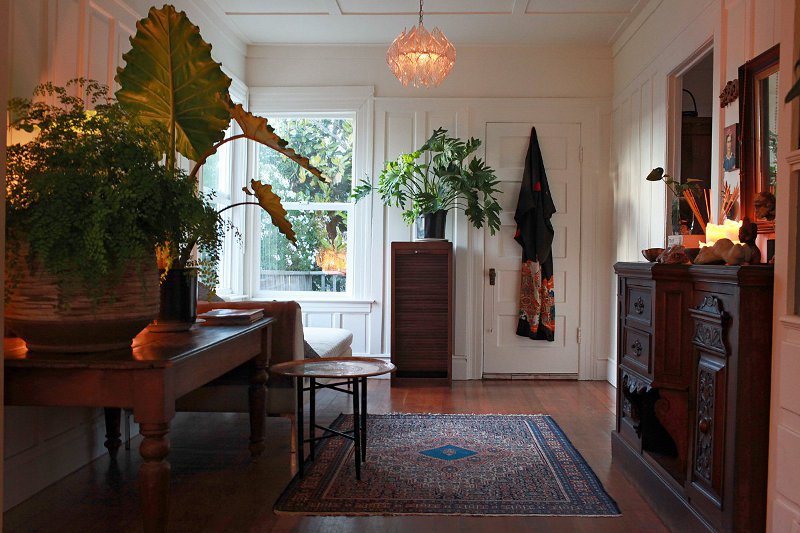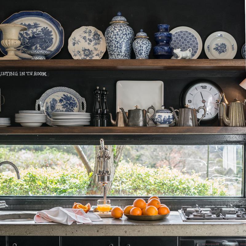 The abundance of indoor plants, the relaxed, unpretentious style, the soft light flooding in, the play of old silver and crockery against darkest blue, a blend of old and contemporary. What’s not to love? FIG Interior Design New York.