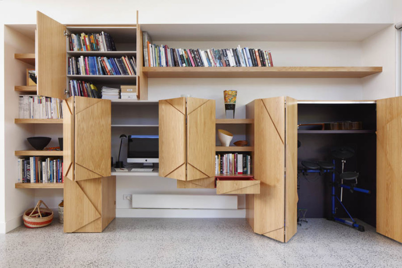 Now you see it. Now you don’t. Yes I do like a good bit of bespoke joinery I do, I do. A home for everything and everything in its home. By FMD Architects.