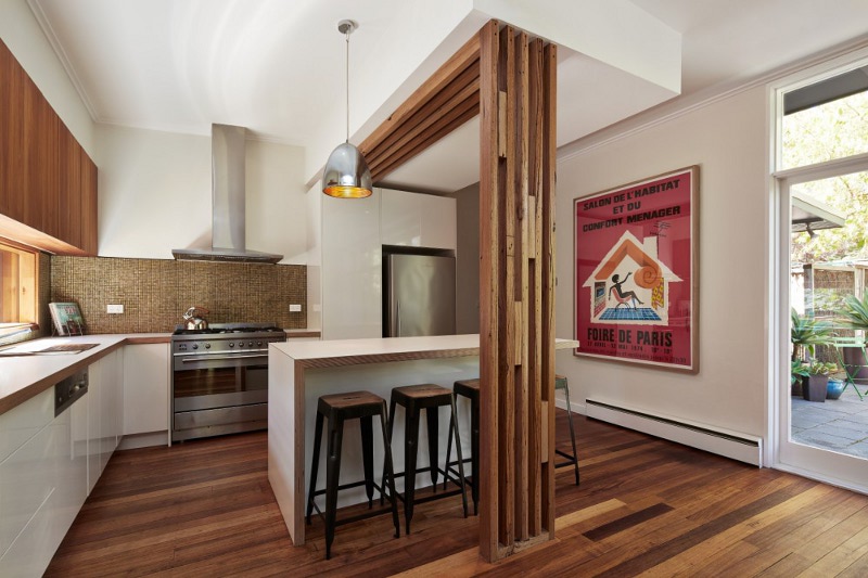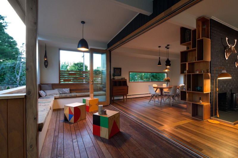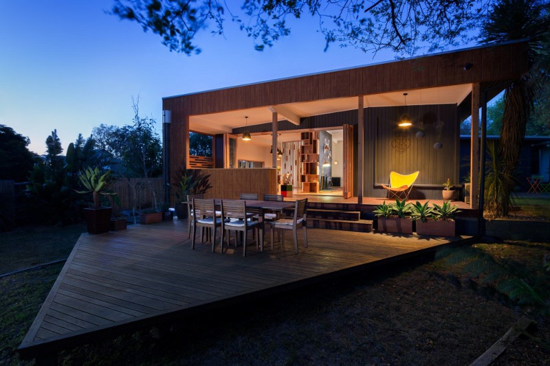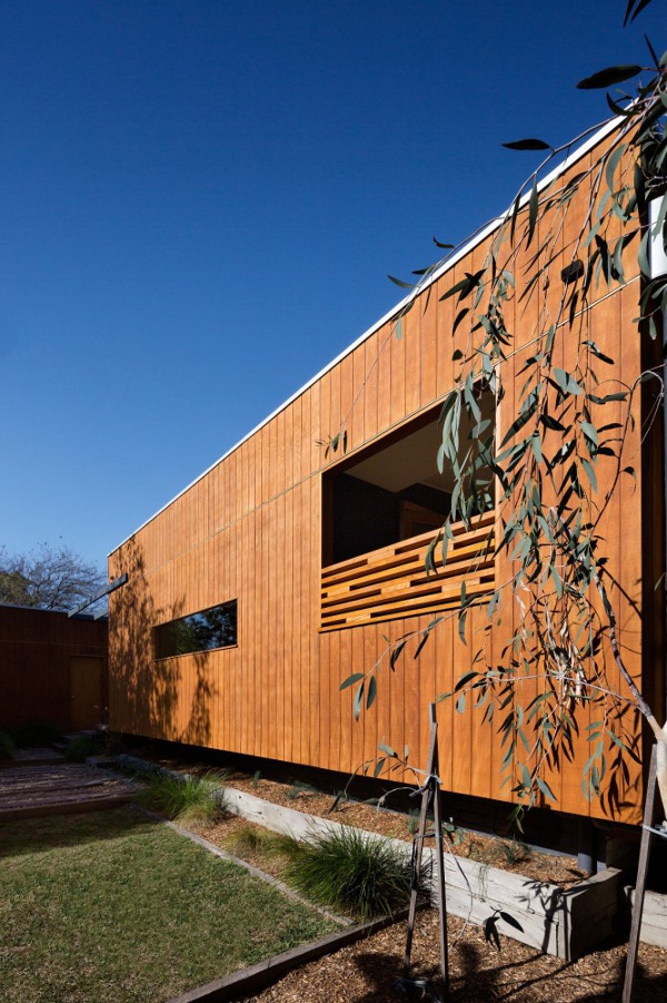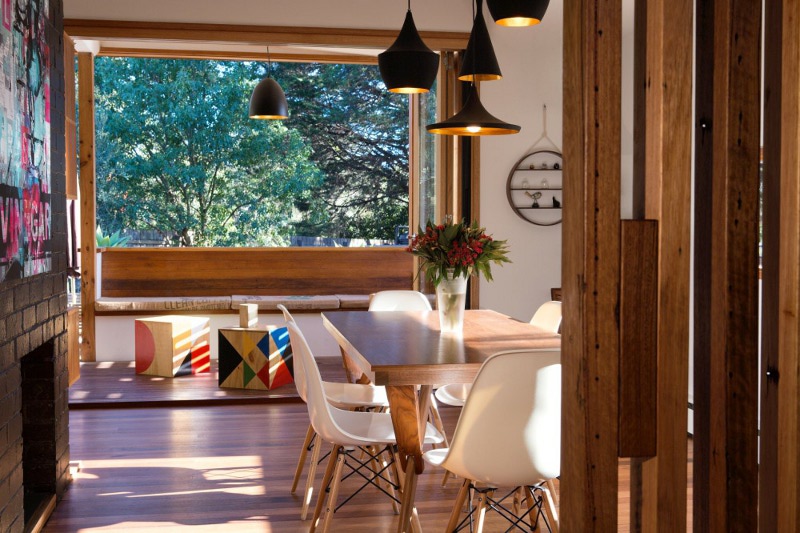 This extension to an old weatherboard home in Northcote, Melbourne is good design, plain and simple. The repetitive use of timber boxes gives a clean lined and contemporary feel while the retention of heritage features does not detract from this modern family home. Light filled, open, blending old and new. Who would know what is hiding behind the old facade? Stompbox by Melbourne based building designers Altereco.