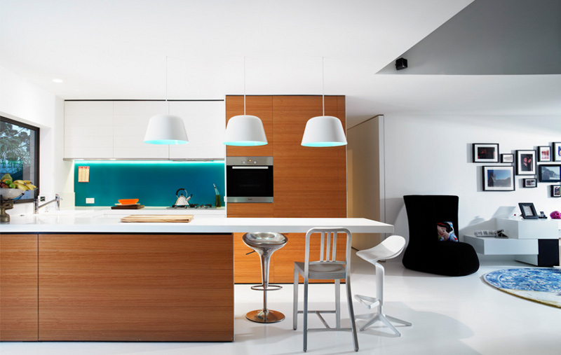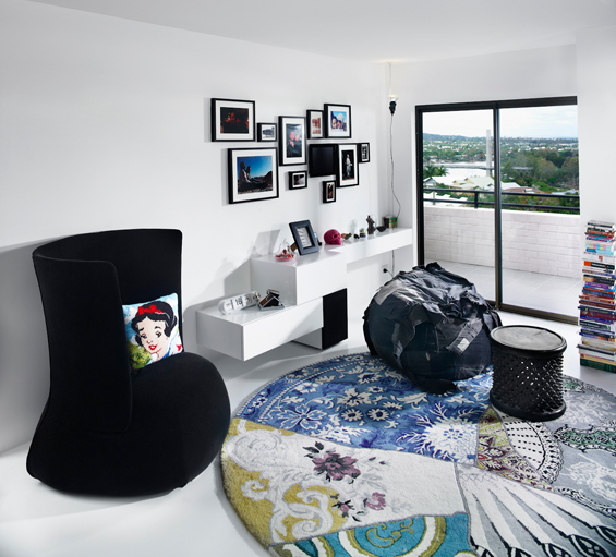 If you live in Australia you know these apartments. Tired old brick exteriors with tired old plasterboard interiors. Wall to wall carpet with a collection of interesting stains, swirling, dripping plaster slapped onto the ceiling and aluminium sliding doors with safety stickers. If you were lucky and lived on the top floor (always no more than four floors or the developer would have to spring for a lift) the “architect” may have thrown in a “cathedral ceiling and clerestory window”. No redeeming features except the size of the rooms. Say what you like about those old apartments they at least had a little more room than today’s incarnations. Now take an 80s apartment in a wonderful inner city location (Brisbane readers should be able to tell by the bridge and the tennis courts across the river) and drag it kicking and screaming into the 21st century and you have a hipster’s pad with room for baby and barbie. Very cool. By Alexander Lotersztain and derlot.
