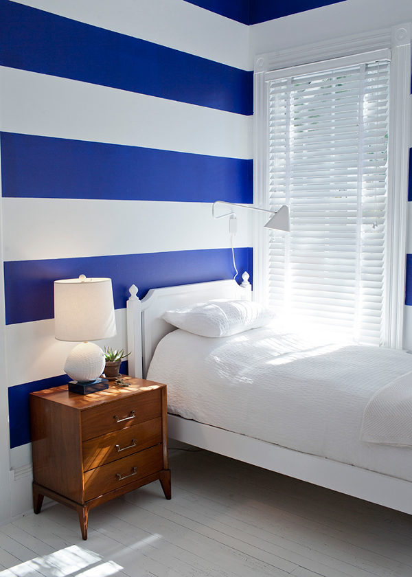 Modern, elegant and invigorating. Family living that is stylish and colourful, special but not at all precious. From the jewel like pops of the emerald green chairs to white on white to opposing stripes, Charleston, South Carolina based interior designer Jen Langston creates wonderful spaces that we’d all love to live in. I want to be five again and have a brother so I can share that knockout kids’ room. Hey might even paint one for myself at my age now! Inspirational.
