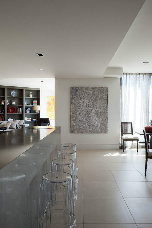 Barefoot luxury. That’s what the owners, a young family, wanted when they asked South African based ANTONI ASSOCIATES to design the interiors of their recently purchased home. Stone and marble play off beautiful timber floors to provide texture and soften the clean lines of the contemporary architecture. Rough formed concrete is balanced by smooth white bulkheads and soft recessed lighting. Warm, tactile, inviting and definitely a home for entertaining. Open bar anyone?