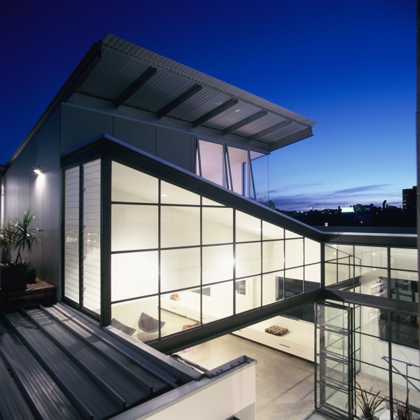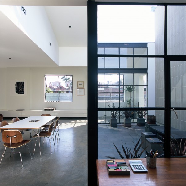 Take a classic 1960’s commercial warehouse building. Bland, boring, in need of a little reuse, redesign magic. Insert two residential apartments and a ground floor retail/office space into the shell. The apartments reference the 60s vernacular of the warehouse building. Glass and steel window walls, internal courtyard. Cool interiors. Cool inner city living. Mission accomplished. Great space. Great reuse of an existing building. By Melbourne firm Taylor Reynolds.