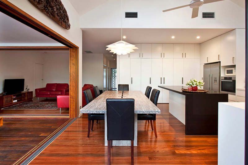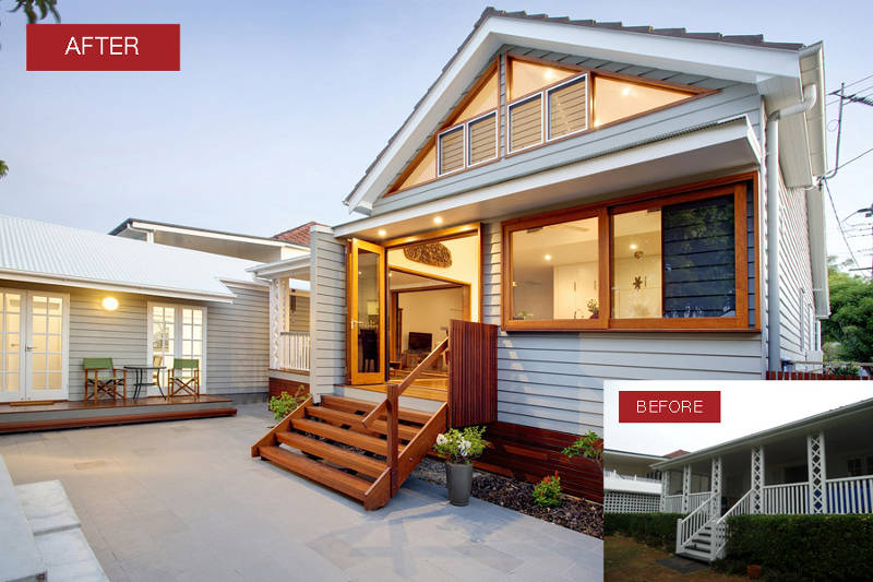 I love a Queensland home. History and grace and a sense of place. Whether the typical timber and tin Queenslander, a gingerbread Federation style or the local version of the California Bungalow (it appears California colonised large tracts of between wars Australia… who would have thought?), these homes are sort after by families in my part of the world. Lovely as they are they do not lend themselves to modern family life though. Faced with a warren of small rooms and generations of unsympathetic renos, home owners want open plan family living, dining and kitchen, extra bathrooms, car parking and swimming pools, decks for al fresco living. What to do? Often our inner city homes are demolished and a contemporary house constructed that bulges over the site and dwarfs the neighbours, changing the streetscape, imposing its “newness”. Today I thought I’d share two homes that have been extended and renovated by Brisbane based Dion Seminara Architecture. Charming old homes now just right for modern family living still with a sense of history and place.