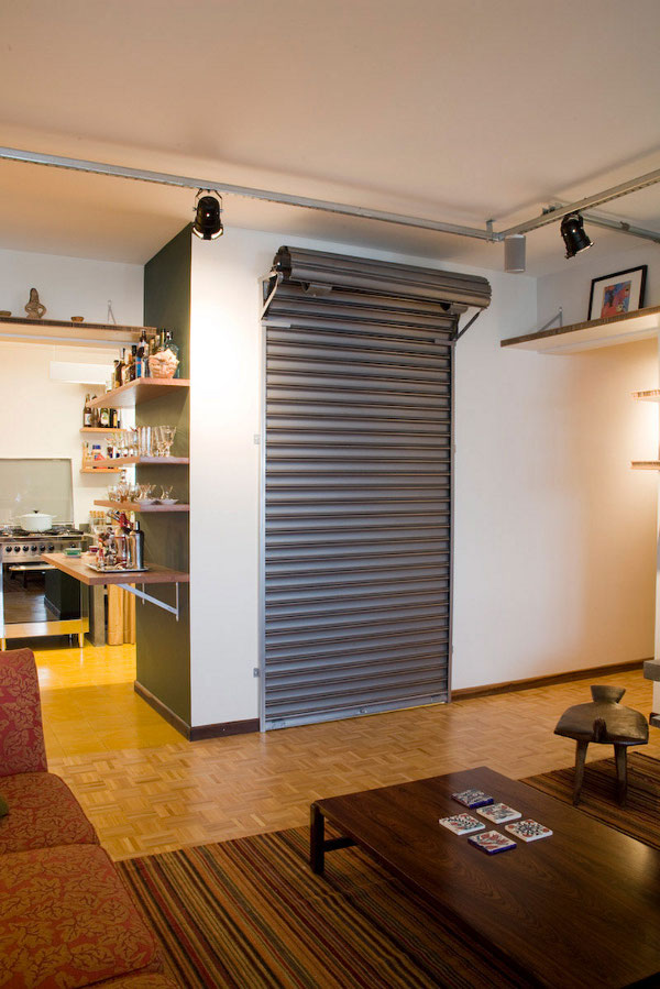 The flexible design of the space within this London home allows it to be used by in a number of ways by family members. A pied-à-terre at one end with loft bedroom, turn another way, open the doors and now a three bedroom flat. The folding screens providing privacy to the loft are polycarbonate. A modern redesign with elegant Victorian proportions by VW + BS Architecture and Design.