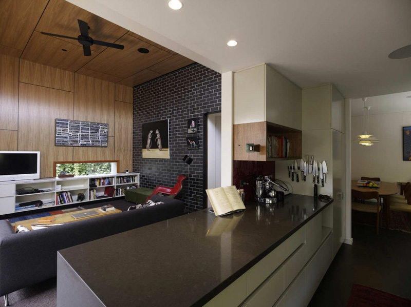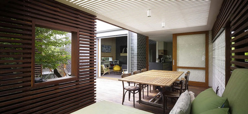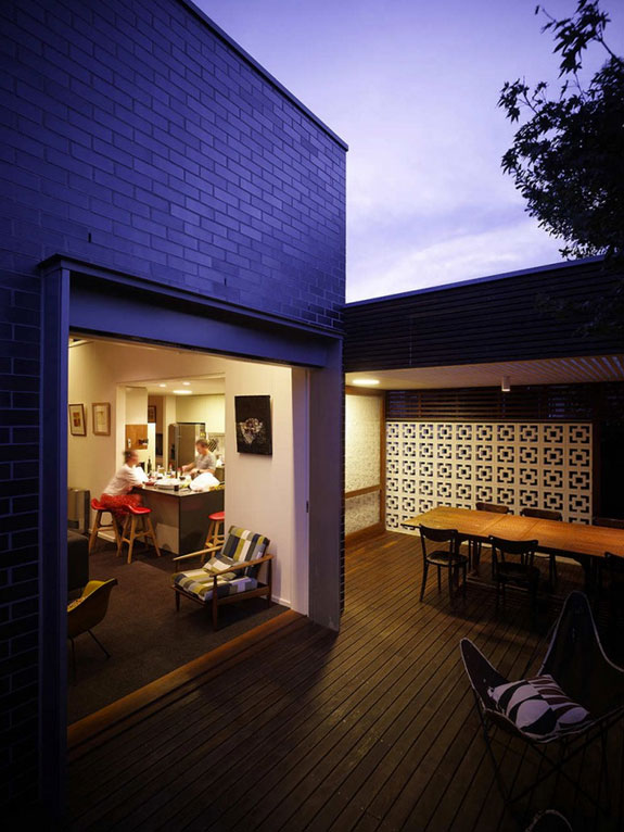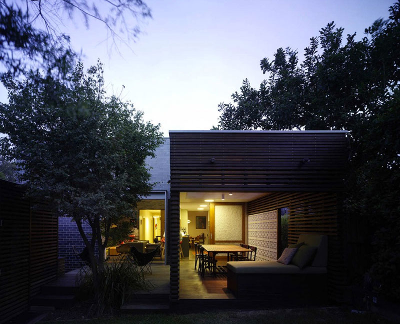 There’s something about mid-century style architecture that really interests me – the casual vibe, excellent quality of light, interesting window placement, almost excessive use of wood…and this house is an absolute gem. Lahznimmo Architects resurrected this Federation era home in Sydney in 2010: The new works are concentrated at the rear of the house, where a dark glazed brick clad living cube creates a grand room with generous openings to the garden. The cube creates a secondary, contemporary form that is clearly distinct from the front of the house. A timber batten clad outdoor room provides a protected space for open-air dining. The space between the outdoor room, the living cube and a detached masonry garage is stitched together with a timber deck set level with the internal spaces. A home that provides serious indoor-outdoor living has been a dream of mine, and this one nails it right on the head.