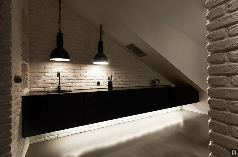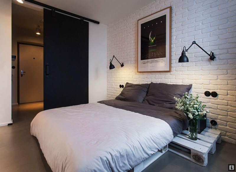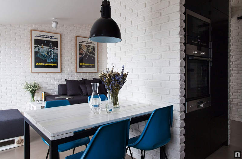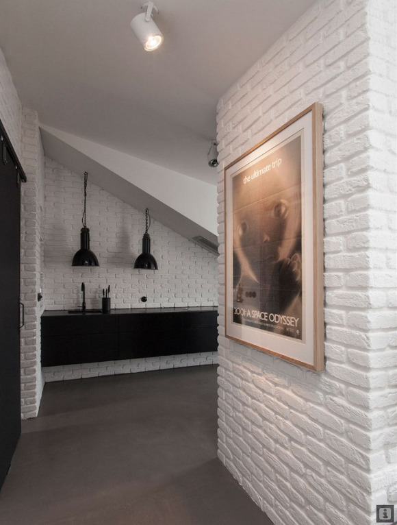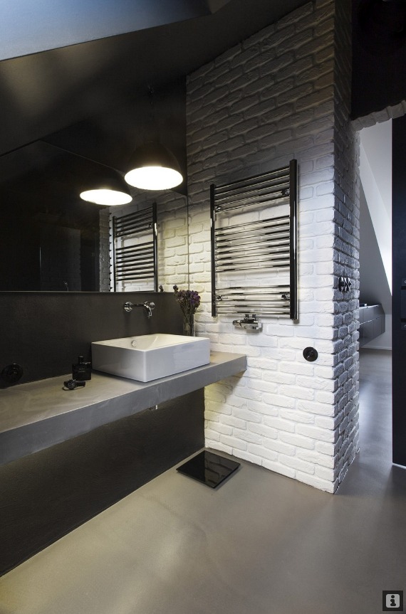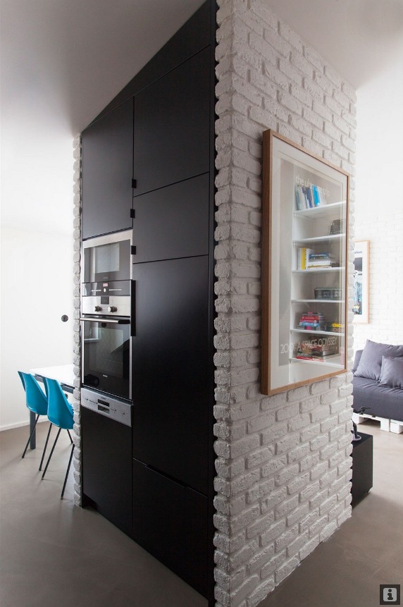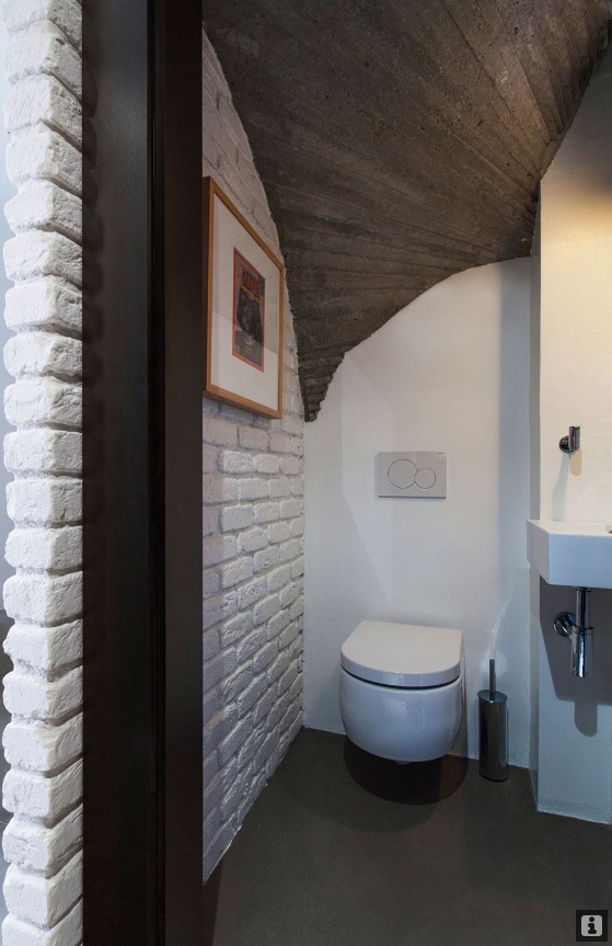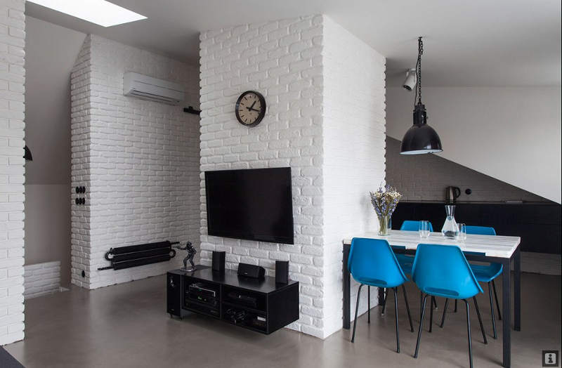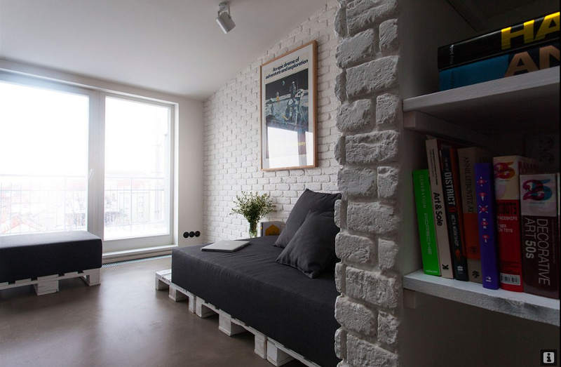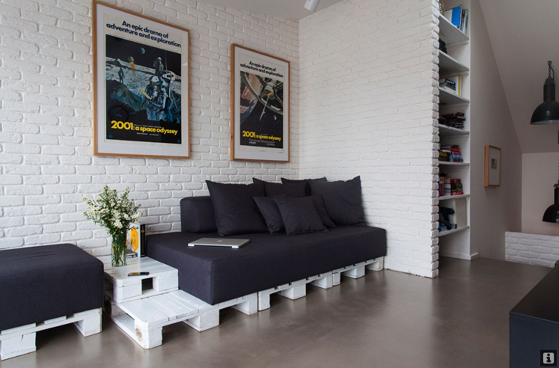 A tiny two storey apartment by Prague architects SMLXL Studio makes clever use of a difficult layout (three chimney breast pierce the space). White painted brick, open plan living, pallets as furniture and a definite industrial vibe all add up to a stylish home for its young owner. The original story is from Czech magazine Bydleni iDNES with thanks to reader Bara for the link and translation!