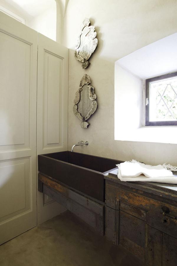 This appears to be a popular bathroom setup as of late. I am ready to burst through those doors and lounge in that tub full of steaming bubbly water with a good book and a full glass of Malbec. Via Ashe + Leandro.