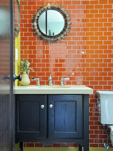 Here is request #2 from Jeffrey and Julia of Stamford, CT: “I found your site when trying to come up with ideas for my small but master bathroom. My wife and I have three kids and are stuck with a bathroom that needs gutting and we have no idea where to start with picking colors and textures to do this project (on a dime, too.) The space is approx. 100 inches long and 60 inches wide. The sink and toilet is on the left, just as you enter this rectangle space and we have about 32 inches of shower space where we want to convert into a tub. I am at a total loss for what to do. I just know the shower wall is rotting and needs to come out. That causes me to loose all the other walls, too so it has become a total re-do, therefore leaving me with a blank canvas. All I know is that it needs storage and I want it to be the center piece of our already black wood furnitured-home, with white walls and ceilings, and natural-colored wood parquet floors. Ugh. So I write you in desperation for inspiration for something to do with our (god-awful) space and need for our simple family of five.” Yikes. That is quite a small bathroom, and a master at that. I personally would try and leave the shower instead of a tub because a shower will save space (plus how do you fit a tub in 32″?). Here are some very small bathrooms that I hope can provide you with some ideas on where to go with your teeny tiny space.