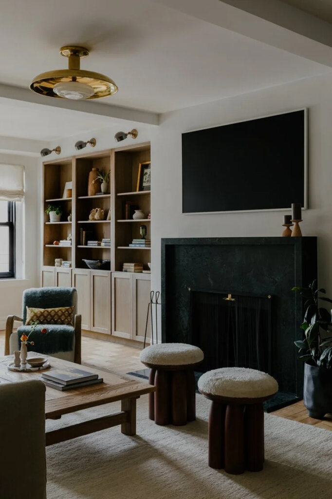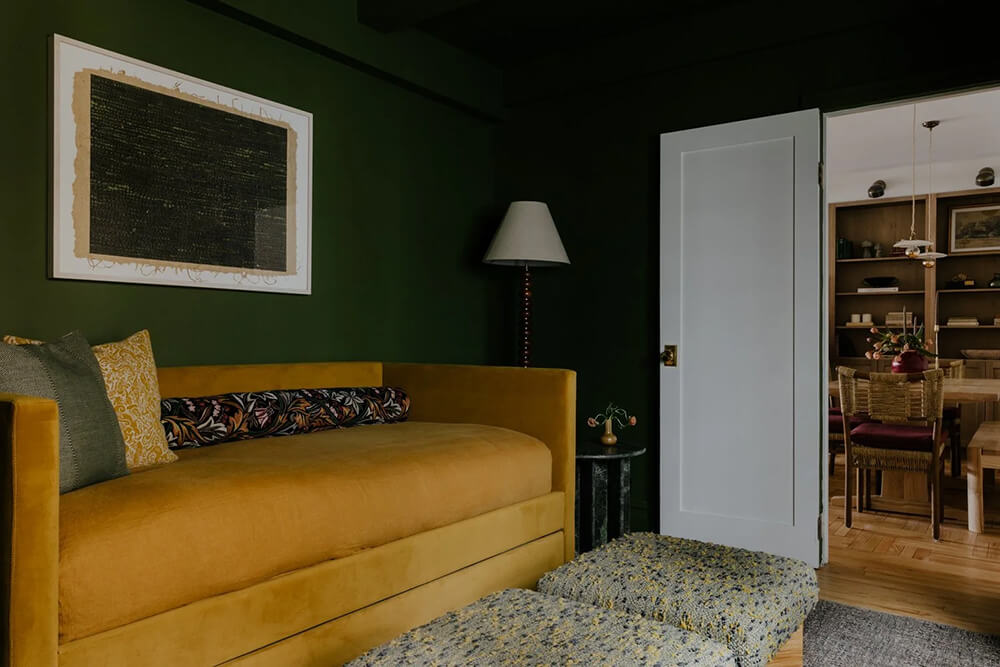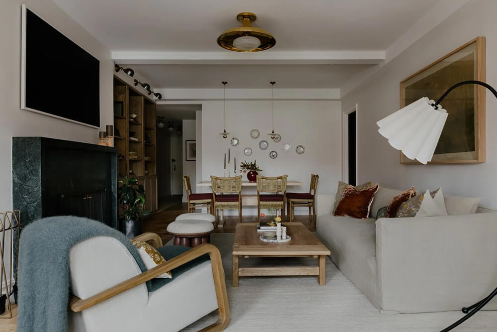 This apartment in the Upper East Side was bland and had a senseless layout. In came Emma Beryl who created a cool hangout for a family with a couple of kids to use on weekends (dictated the pandemic). It now has some really great built in storage, a dark and dramatic room for the kids that houses a daybed with trundle so it does double duty when the kids aren’t there, and a much better layout in the kitchen. Stylish and timeless and really functional.