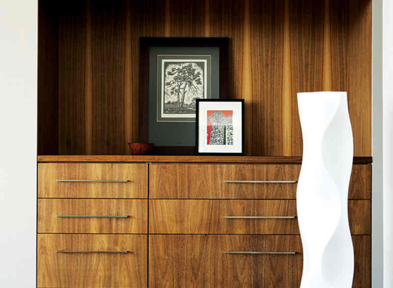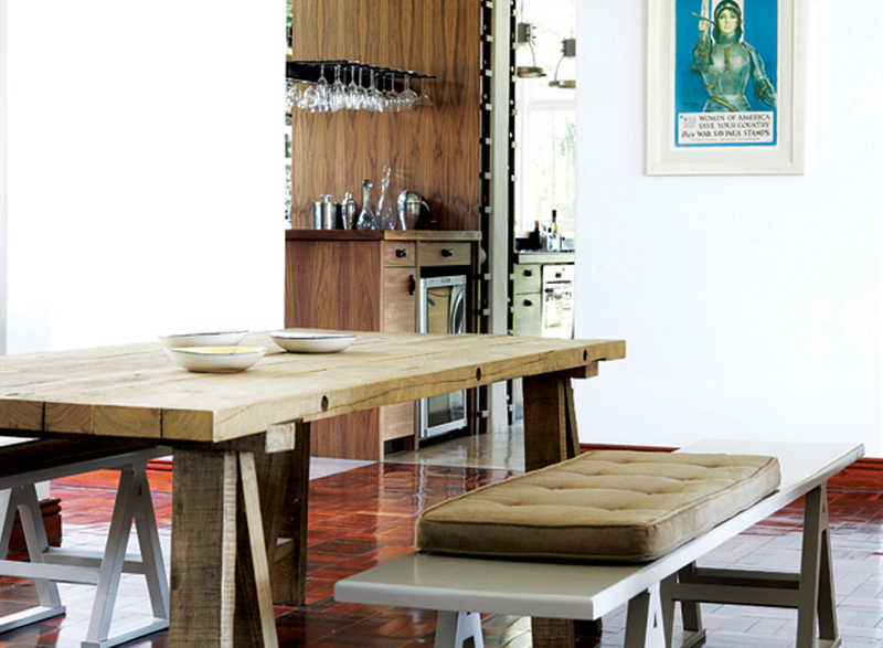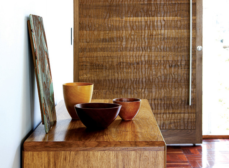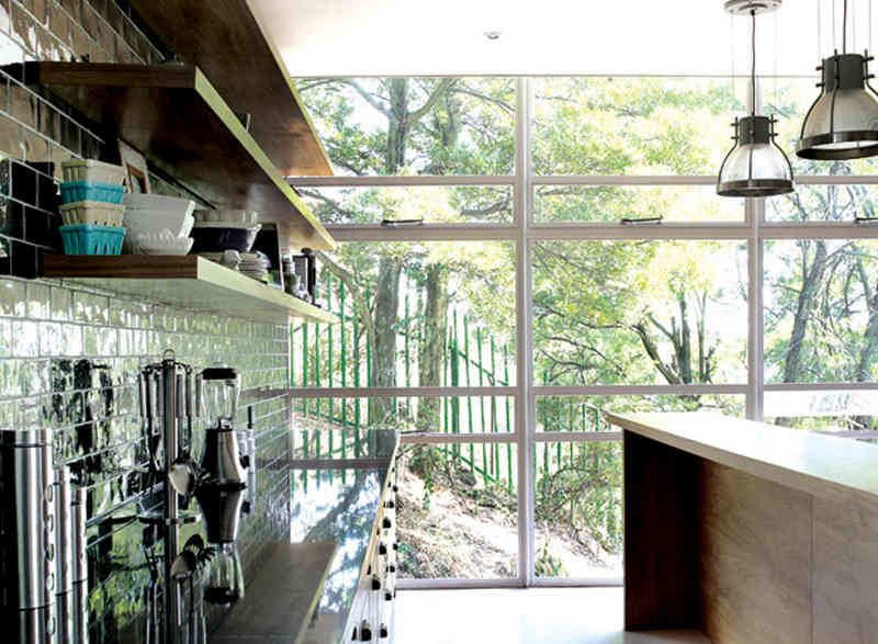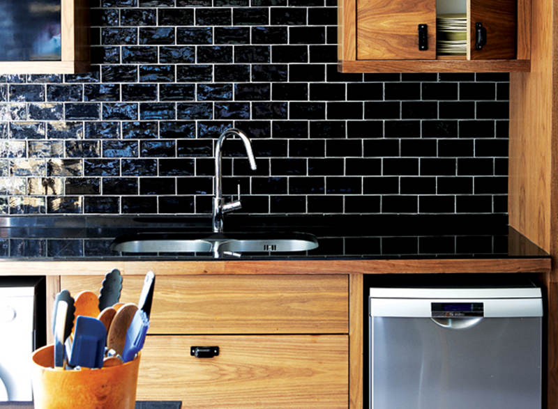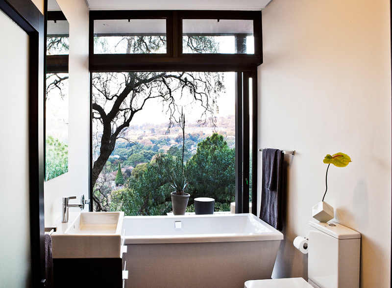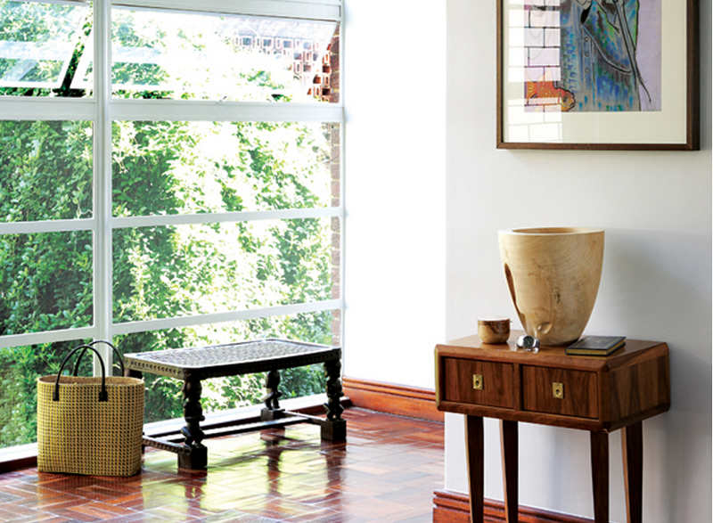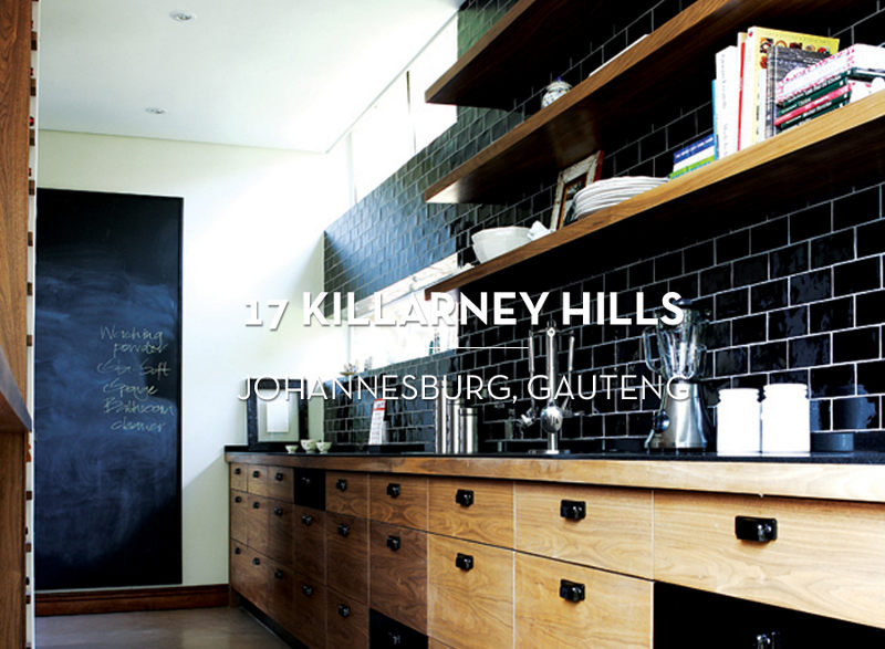 The second project is the renovation of a flat in the Johannesburg suburb of Killarnery. Working within the existing constraints of the building but celebrating the beauty of its wall of windows, it is the new kitchen, though, that is a triumph. Oak and black tile ground the room and play against the light bright views from the windows.