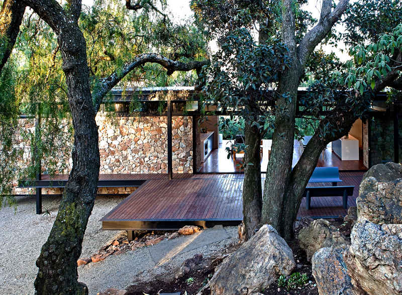 Individual designs that fit individual needs. Sustainable, contemporary, with an emphasis on local materials and respect for site. Two projects from GASS Architecture Studios, located in Johannesburg & Cape Town, South Africa. The first, Westcliff Pavilion is a steel framed structure located on a ridge in Johannesburg. The two bedroom dwelling lightly touches the ground while its floating stone wall is a play on the local stone building materials and the notion of wall as sturdy and grounded. All in all a beautiful modernist box that sits softly in its surrounds.