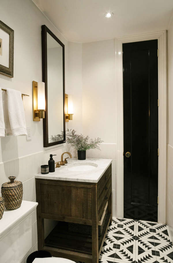 I am crushing hard on this home designed by London-based Tiffany Duggan of Studio Duggan. It is a eye-catching blend of dark colours, pattern, some pink which always wins me over, and graphic patterned tile. Yes, yes, yes and YES!