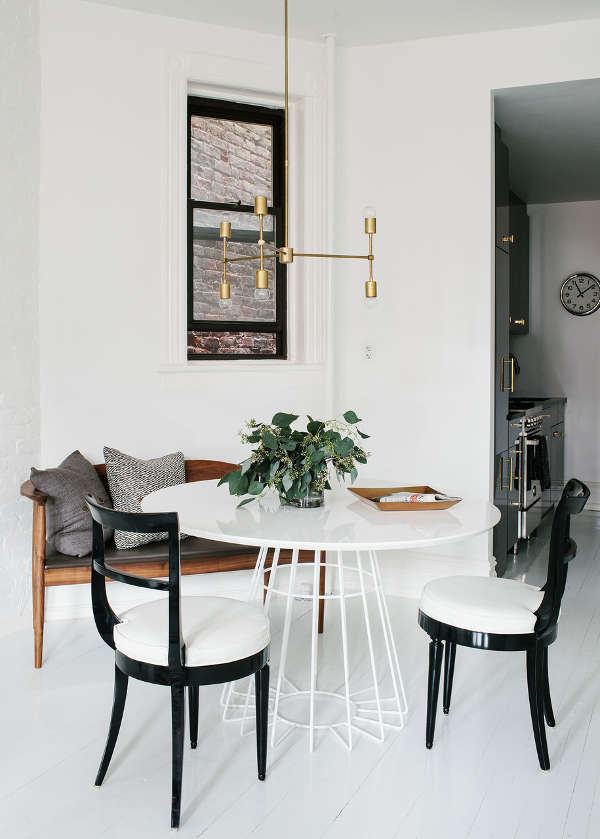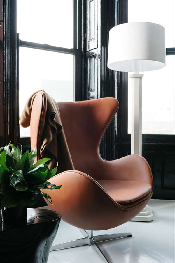 This 2 bedroom Park Slope apartment by BHDM design with its high contrast black and white colour palette, rich tobacco brown leather and brass highlights is a stylish example of cosmopolitan cool. Edgy and urbane, sophisticated and oh so smooth.