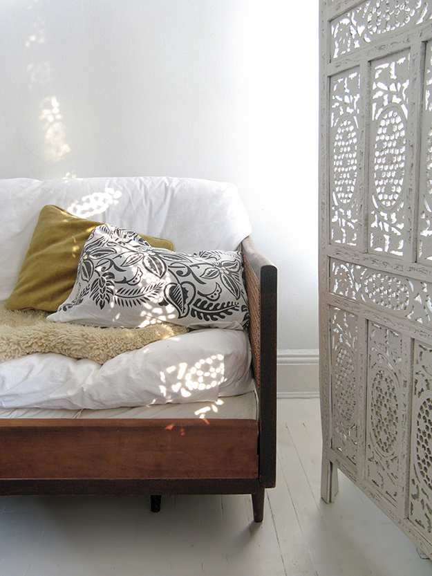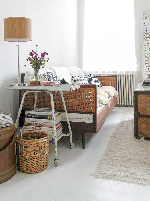A little bohemian for your afternoon in this East Village apartment by Jill Danyelle of Verdoier. Fabulous neutral colour palette of mostly white and wicker and wood.