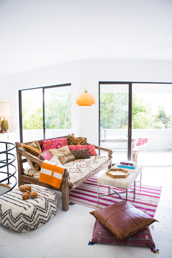 This beach house designed by Amanda Masters is EVERYTHING. Dear gawd I love this. The all white backdrop makes all of the fun and rustic vintage pieces the focus, and bold textiles with lots of pattern pop. It is bohemian chic at its finest.