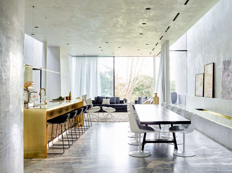 The architects own house. Luxury of space and materials. The silky smoothness of stucco, the cool touch of stone and marble, the outrageous beauty of a brass kitchen. It could be a dream but instead it’s a dream house. Armadale Residence by Rob Mills Architecture & Interiors.