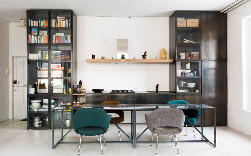 This is another one of those scenarios where I apparently have been living under a rather large rock. How have I never come across this super talented design firm, based in Brooklyn NY, founded by an Anglo-French husband and wife team of ex-bankers? The New Design Project is Fanny Abbes and James Davison and their style rocks my world. Exhibit A – I LOVE THIS LOFT!!! A young couple’s urban residence is enriched with bursts of bold color and texture, transforming it into an elegant and modern apartment full of strong and vibrant flavors. Modern pieces have been combined with playful accents and ethnic touches to create a space that is eclectic but undeniably urban, and is cool and relaxed whilst feeling grown-up. The use of simple graphic patterns and vivid colors tones down the existing woodwork and prevents the space from feeling overly rustic. Design by Fanny Abbes, photos by Alan Gastelum.