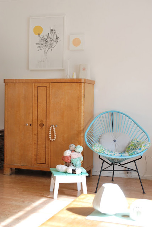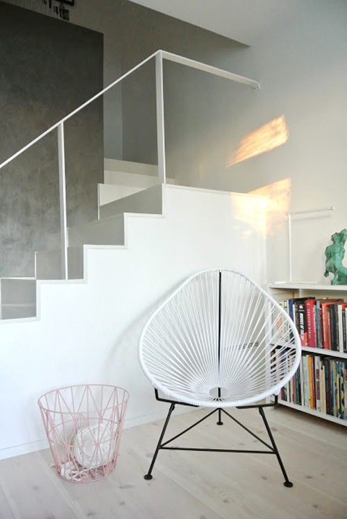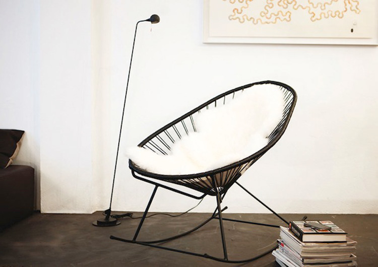 I love chairs, and all kinds – plush, wooden, canvas, leather, plastic, whatever floats my boat. Aside from some random vintage chairs and my Green Light District leather beaut, I currently have a couple of white Pantons, a faux Tolix from Homesense, and a few Eames (yellow shell, black leather shell and a kelly green upholstered armchair on wheels). I would love to add an Acapulco chair to the mix. Whether indoors or outdoors, this classic Mexican chair works anywhere, indoors or out on the deck. I thought it was about time I did a feature on this lovely chair.