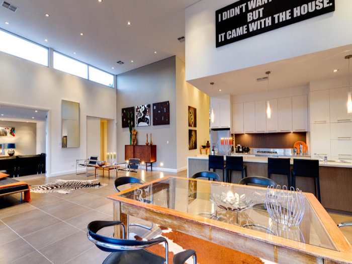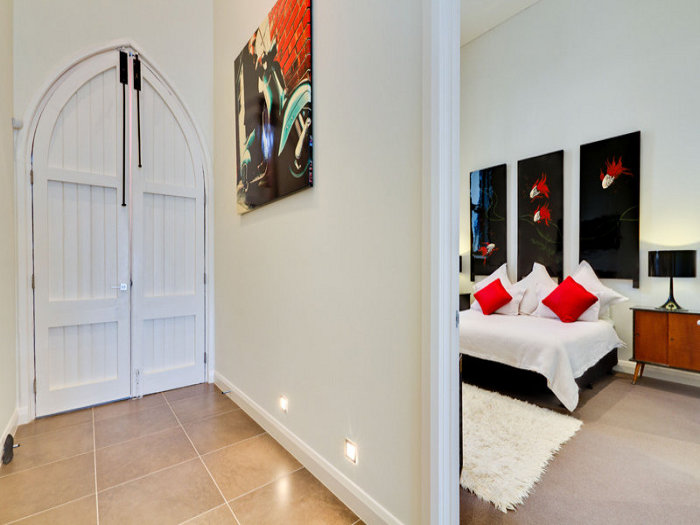 We love a good church conversion on Desire to Inspire so when I was real estate stalking in Adelaide in South Australia I all but shouted hallelujah when I came across this 1889 bluestone church given just a little contemporary makeover. Love it! Especially the “kitchen sign” and the supersized Tretchikoff. Link here while it lasts.