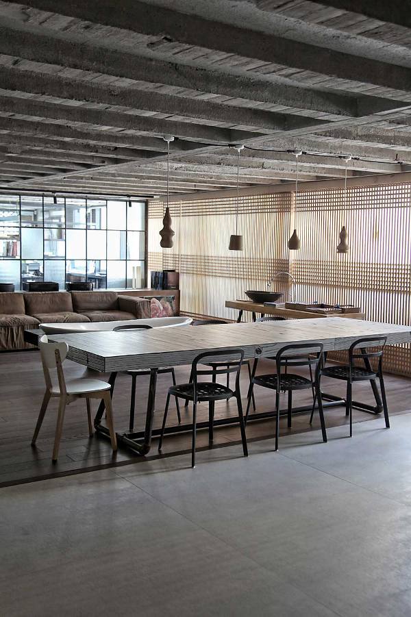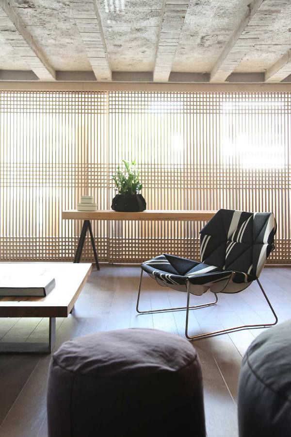 Brutalist concrete meets European minimalism and Eastern aesthetics. Light and dark, hard and soft, manmade and natural with a leitmotif of grid like patterns and screens. Faliro Loft by Greek architectural firm esé Studio.