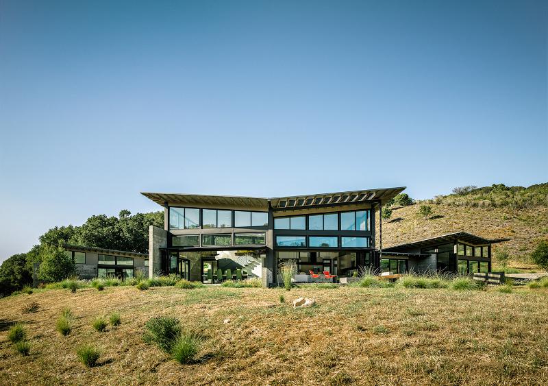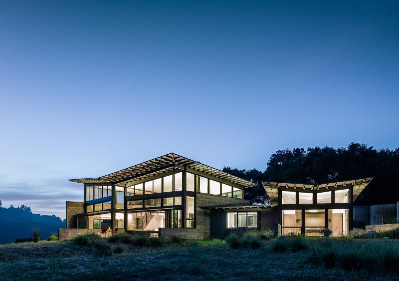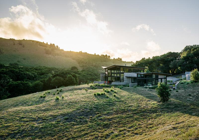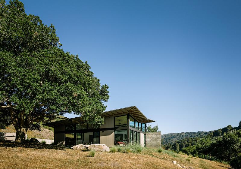 A concrete, glass and steel butterfly alighting on a Californian meadow. Wings spread in the sun. Light on the land despite its monumental materials. An owner’s dream. An architect’s creation. The Butterfly house by Feldman Architecture.