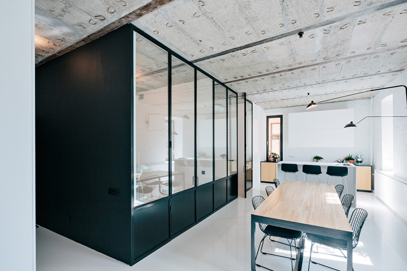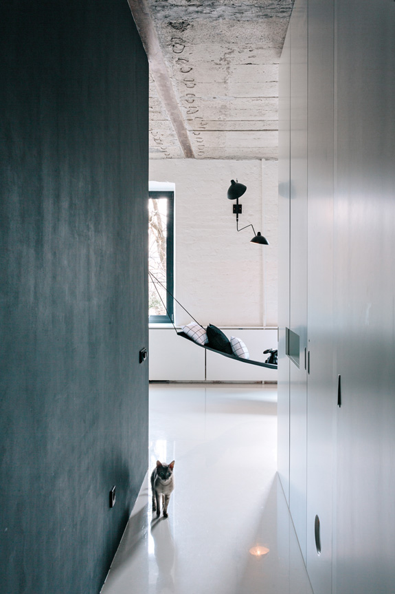 I wanted to share this apartment in Russia with you, because it is a wonderful example of modern, minimalist architecture done right in a small space. While fairly simple in its design, the black steel wall/windows is a DREAM, with white painted brick, concrete ceiling, sleek cabinetry and flooring, and the deep window sills all work so well together. I LOVE it….except maybe the hammock. I would prefer a sofa. 🙂 Great job Crosby Studios!