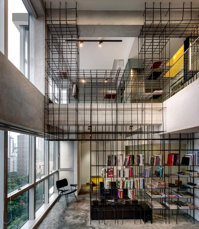 A bookshelf, a wardrobe, a table, a wine rack, and a sculpture. One piece of furniture frames and connects the space, reinforcing the meaning, the personality, the purpose. Monoform Living at the Strata by Singapore design firm Produce.