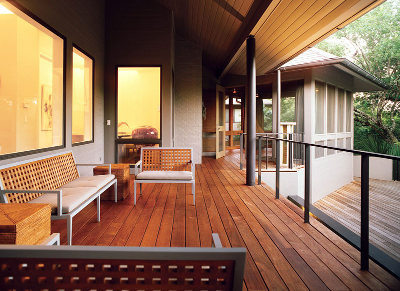 A modest, narrow cottage all dolled up and extended. A new lease on life with clever low line windows to let in the light but allow privacy… plus you get cool glimpses of legs walking, or in my case stalking, along. Love the concrete floors, the wine storage in the galley kitchen, the little ponds at the base of the windows, the traditional facade which never lets on that something bright and shiny new is hiding just behind. You’ll find the house in Northcote, Melbourne. Link here while it lasts.