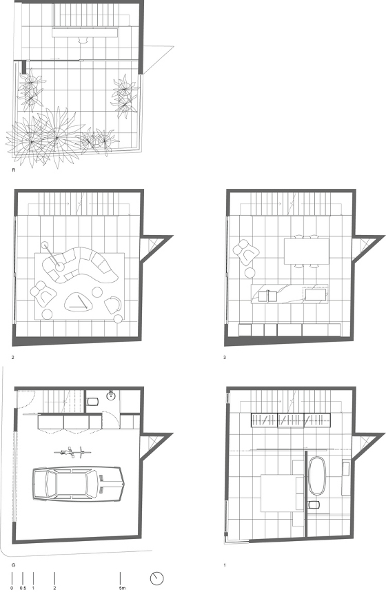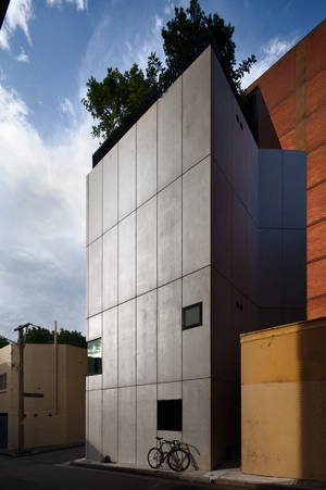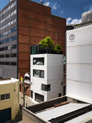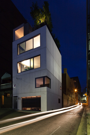 Rising up like a sturdy weed in a pavement crack. A spindly, winding shoot of a building reaching for the sun between the city structures. An ultra-compact concrete vertical house over 3 levels in what was previously a parking space for 2 cars, six by seven metres. And when you have wound your way to the top what is your reward? A perfect small garden with very large view. Small House by Domenic Alvaro.