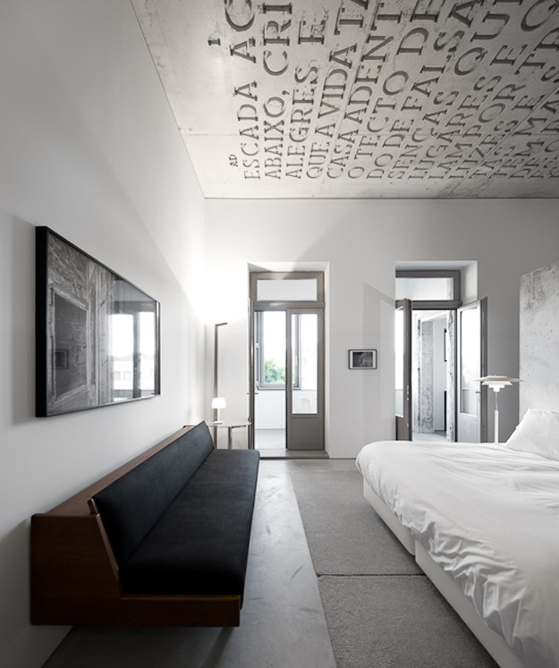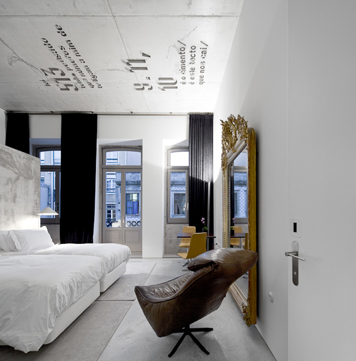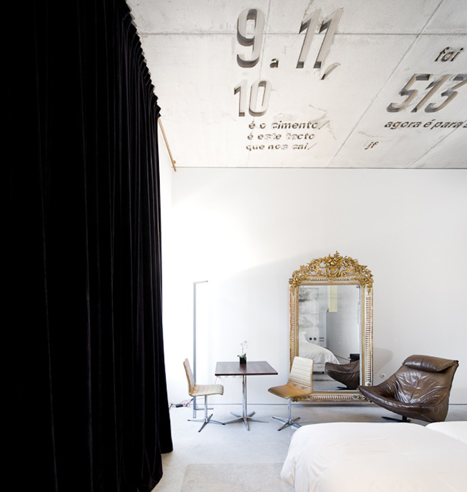 A Brazilian reader named Mabel was fortunate enough to spend 4 days last month at this magnificent hotel in Porto, Portugal called Casa do Conto. It is a restored 19th-century bourgeois home that has been modernized and simplified. It is stunning. Shades of grey, white and black, concrete and unembellished walls. I would love to stay a while in a hotel like this, to see how I would feel in an environment this modern and minimal, imagining it as my home. I adore spaces like this but am not quite sure I could live like this long term. In any case, if I ever have the opportunity to visit Porto, I would gladly stay here. 🙂
