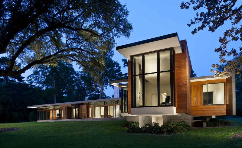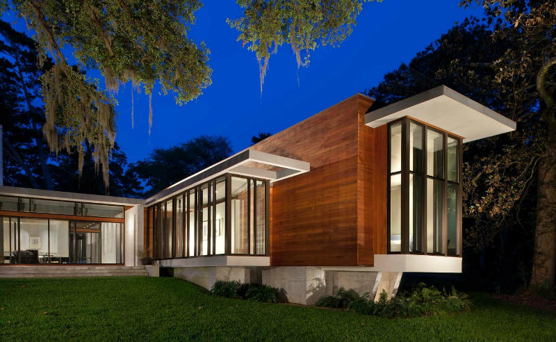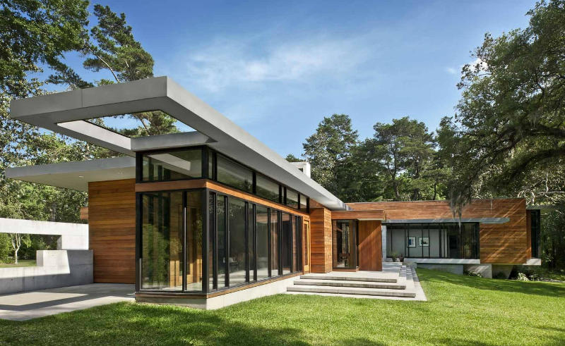 Kim may be on a roll with the rustic and the bucolic this week. Me? I seem to be playing the retro riff. Modernist homes with a distinct midcentury vibe. Glass and steel, stone or timber boxes with sleek interiors. Hard surfaces and luxury. Like this Bray’s Island, South Carolina home by Atlanta based SBCH Architects. Sharp sophistication.