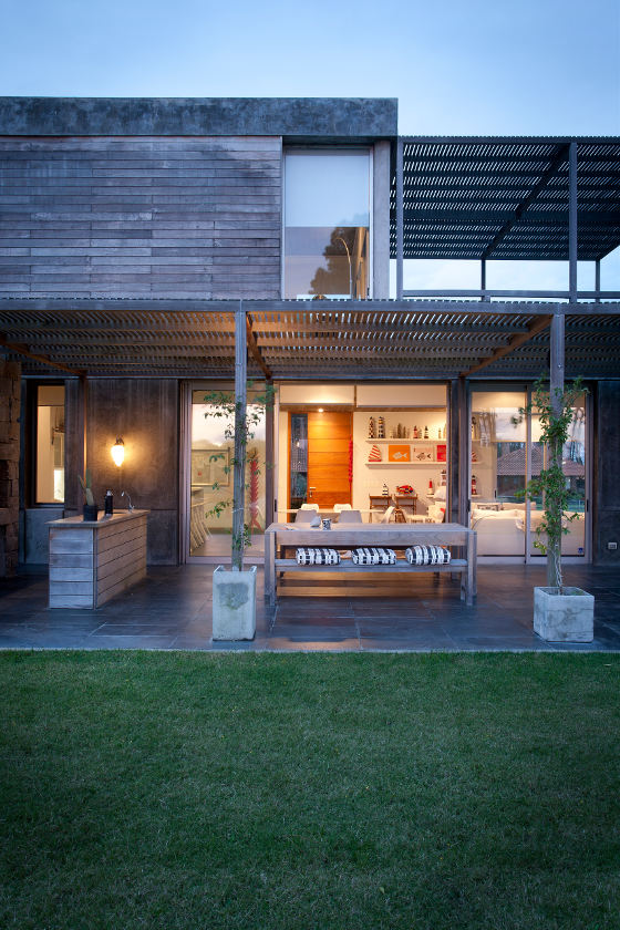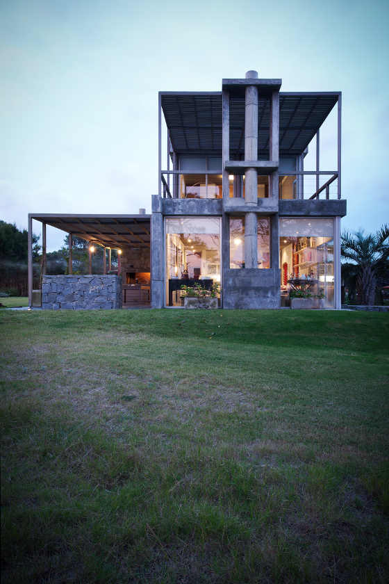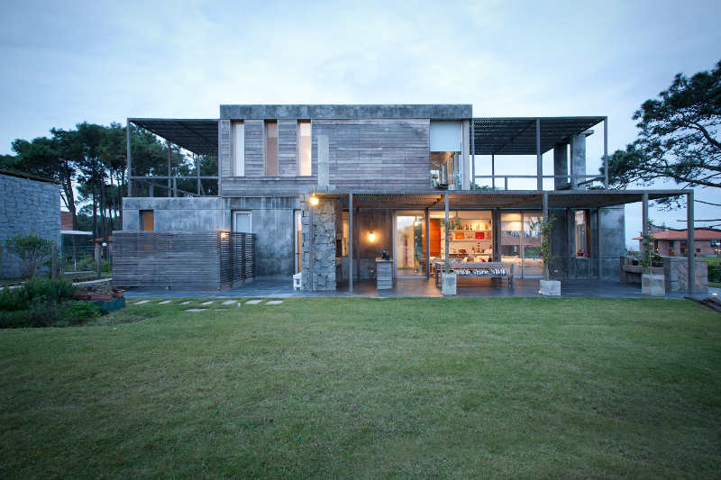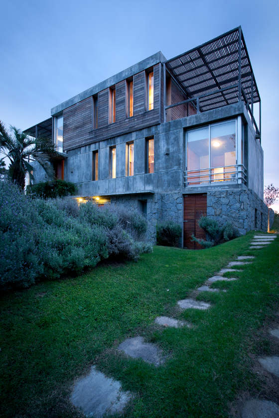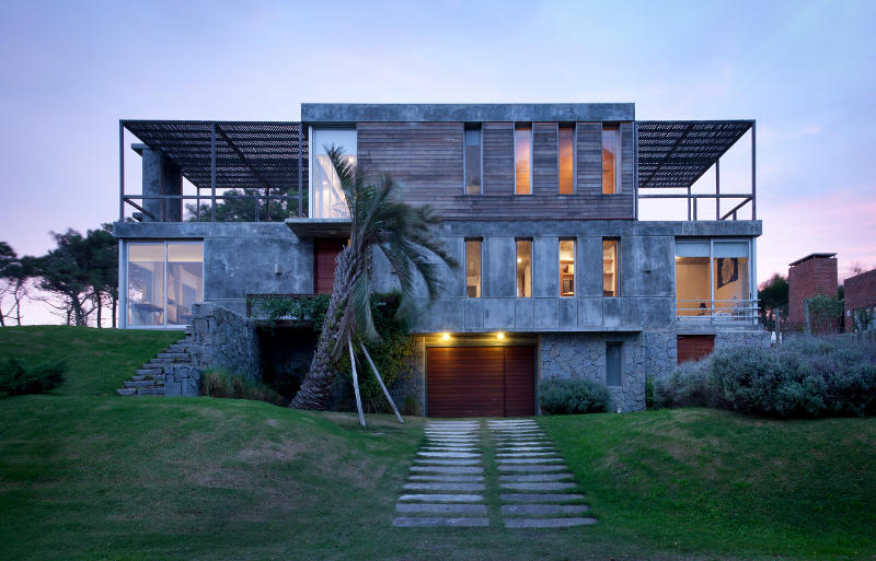 Solid as a rock. Anchored to the dunes. Protection against wind and spray, sun and seasons. A stylish shelter from the elements. More from Martín Gómez Arquitectos. Stone and concrete, timber and glass. An imposing facade hides an intimate family home. Punta del Este in Uruguay must be a beautiful place to live.