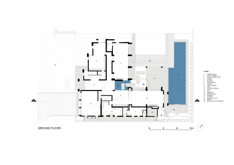 VIVID Architects prepared the initial concept design for this home, a contemporary reboot of the more classical architectural styles. SAOTA – Stefan Antoni Olmesdahl Truen Architects and ANTONI ASSOCIATES were then appointed to refine & develop the design and oversee the project to completion. The facade is Georgian inspired but the modern aspect of the look is driven by a dynamic of recessed and projecting panels and cubes that create courtyards and terraces that articulate and add interest to what is a highly organised shell. The interiors, by ANTONI ASSOCIATES, are equally sculpted.