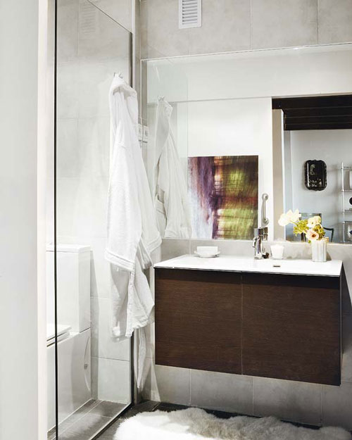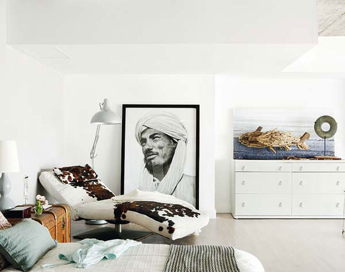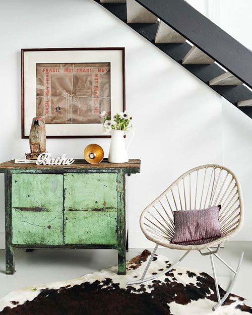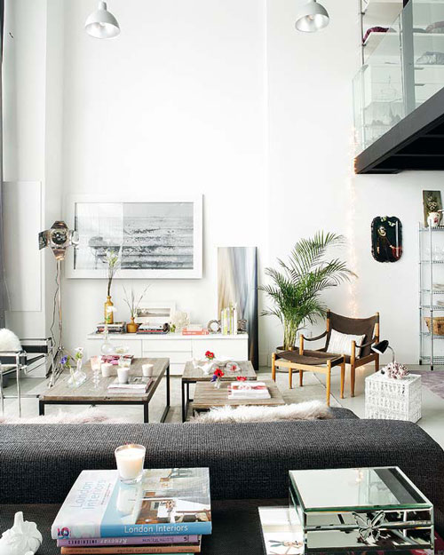 A big thanks to Sonia who left us some links to Spanish shelter magazines – because I came across an incredible loft from www.micasarevista.com that I immediately fell in love with. OMG – it’s got everything. First, it’s a loft. You can’t go wrong with that. Then there’s white walls (my new favourite wall colour), a mix of modern and retro vintage furnishings, Tolix dining chairs, harvest dining table, metro shelving, cowhide rugs, funky artwork, Anglepoise lamp….when can I move in?!?!