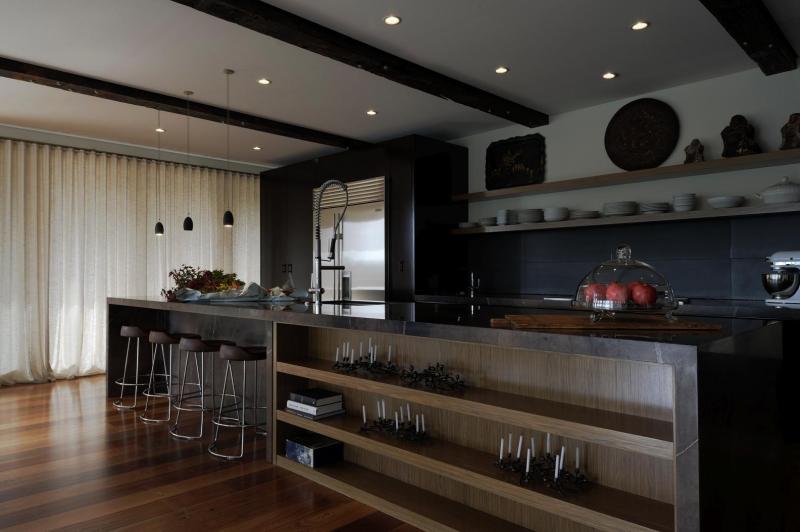 For those of you who loved yesterday’s dark kitchen here is another by Patricia Stewart Designs. Contemporary and sleek but sitting happily with an electic family/dining area.