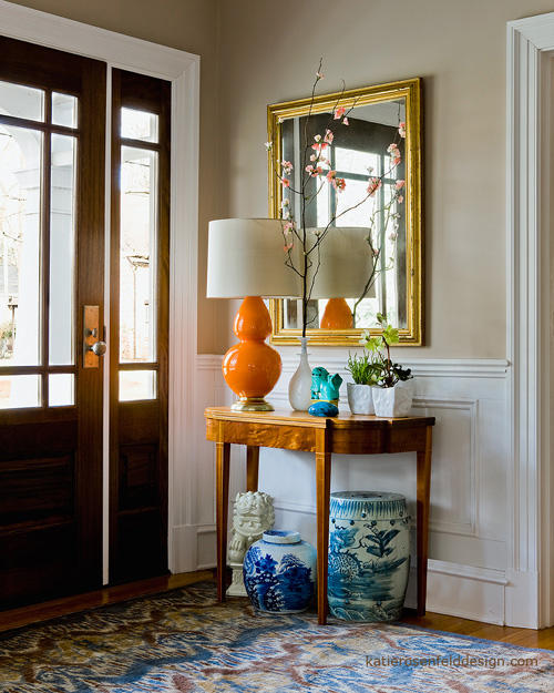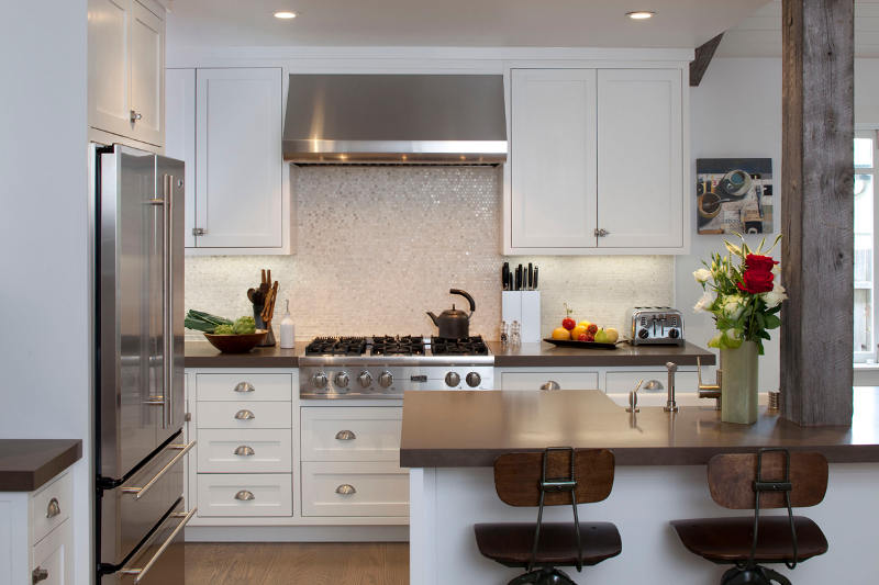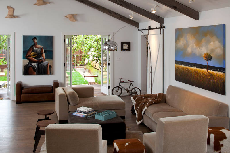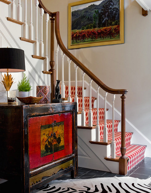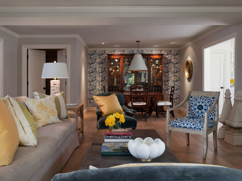 A cottage remodel in Mill Valley, California. Casually elegant with open plan living, a kitchen to die for and an entrance that welcomes and impresses. Colour brings the spaces to life. A wonderful transformation of a humble house into a welcoming family home. Residential Design by Heydt Designs, Interior Design by Benjamin Dhong and Matthew MacCaul Turner. Photography by David Duncan Livingston.