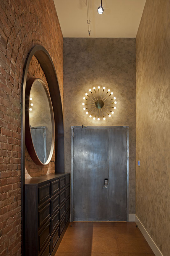 Serious loft love happening with this post right now. Located in the Tire Town building in Salt Lake City (built in 1925 to house the Firestone Tire & Rubber Company), the current owners wanted to bring this loft back to its industrial roots and enlisted City Home Collective for the job. There is so much to love about this space – the cherry-finished kitchen cabinets set against a brick wall, the gothic industrial master bathroom, the double-sided fireplace and of course, the fabulous lighting in the bathroom and bedroom.