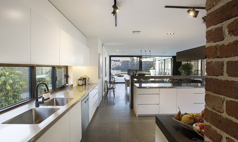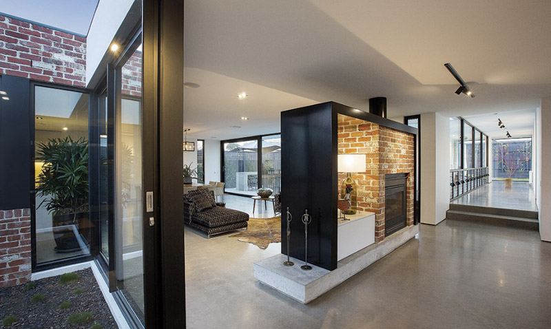 Melbourne-based design practice mckimm create contemporary, stylish spaces from design to construction. This U-shaped home wraps itself around an outdoor kitchen, firepit and pool. A modern industrial vibe is warmed by walls of exposed brick while the use of concrete unites its open spaces.