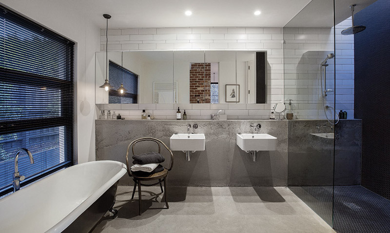 Love the exposed brick in this bathroom by MAKE Architecture. This is going straight to my inspiration file for the second bathroom we hope to build in the old stables in our house. Modern with just the right amount of historical touches.