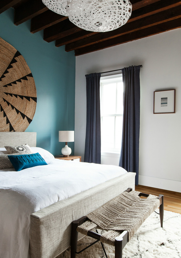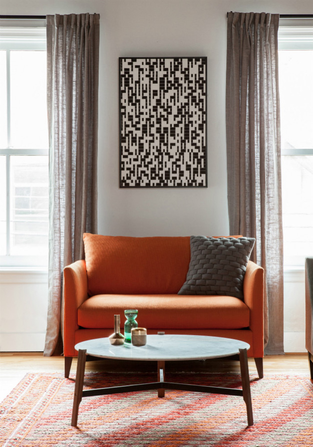 This is another one of those scenarios where I apparently have been living under a rather large rock. How have I never come across this super talented design firm, based in Brooklyn NY, founded by an Anglo-French husband and wife team of ex-bankers? The New Design Project is Fanny Abbes and James Davison and their style rocks my world. Exhibit A – I LOVE THIS LOFT!!! A young couple’s urban residence is enriched with bursts of bold color and texture, transforming it into an elegant and modern apartment full of strong and vibrant flavors. Modern pieces have been combined with playful accents and ethnic touches to create a space that is eclectic but undeniably urban, and is cool and relaxed whilst feeling grown-up. The use of simple graphic patterns and vivid colors tones down the existing woodwork and prevents the space from feeling overly rustic. Design by Fanny Abbes, photos by Alan Gastelum.