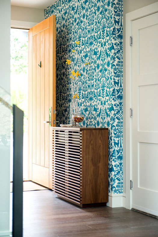 I’m really excited to share this home with you today because I absolutely LOVE IT! It’s the Victoria, BC home of Jay & Gord, pimped out by interior designer Kyla Bidgood. This home is modern and fabulous, with a mid-century vibe and some superb wallpapers and accent walls that bring some funk. I must point out the pair of Hans Wegner Teddy Bear chairs – I lust for these – that happen to be originals from Gord’s childhood family cabin that have been spruced up. Seriously? I hate Gord. LOL Great job as always Kyla!!! (P.S. Check out more of her work here and here, and more details on this project here)