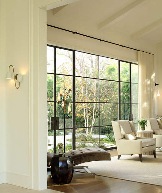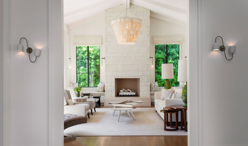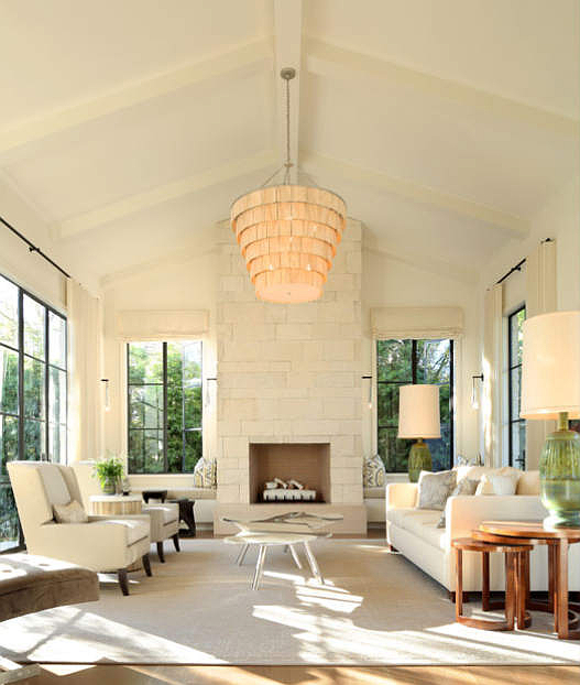 Let’s talk about this room. Walls of white and all those windows. Light dancing across the floor. Green lamps playing against the greenery just outside. Love it. You can see more of this wonderful house by Annette English & Associates here.